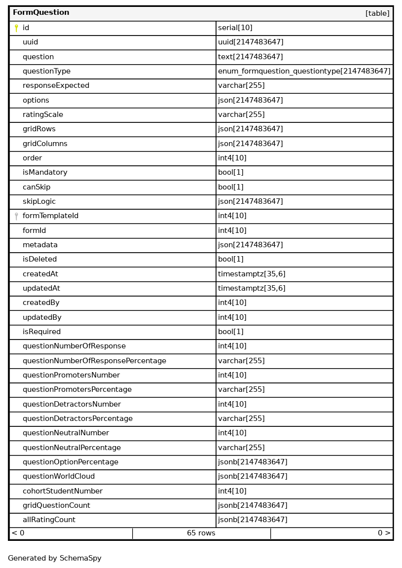 | id | serial | 10 | √ | nextval('"FormQuestion_id_seq"'::regclass) |