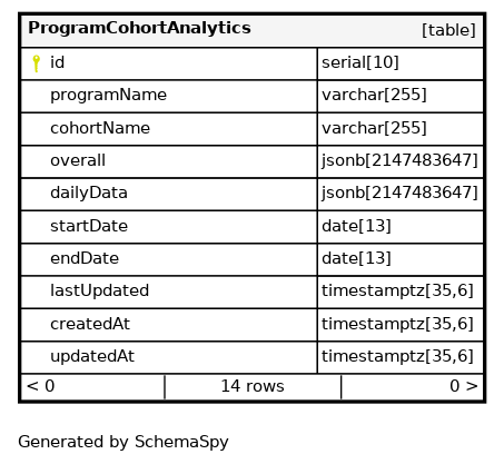 | ProgramCohortAnalytics_pkey | Primary key | Asc | id |