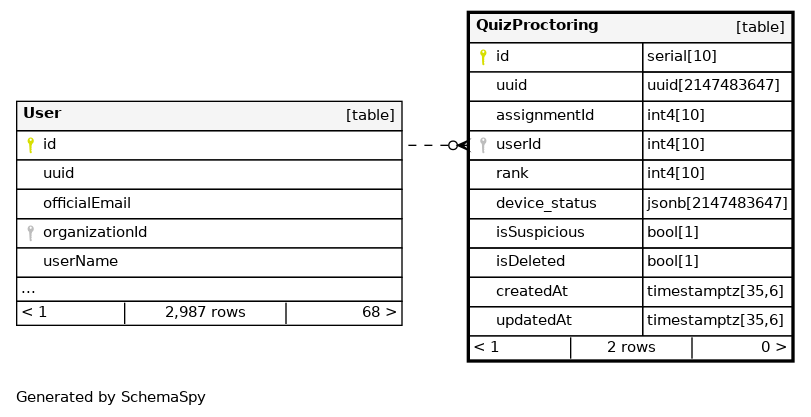 | QuizProctoring_pkey | Primary key | Asc | id |