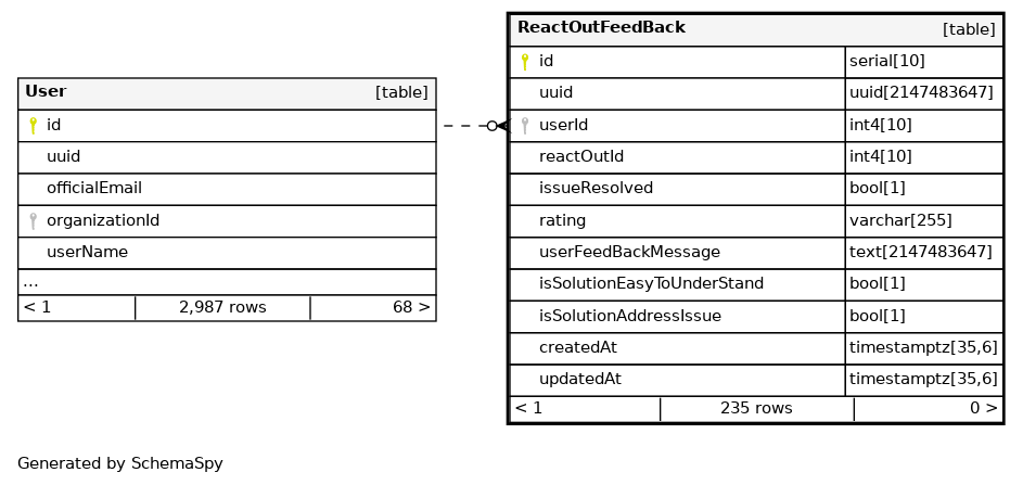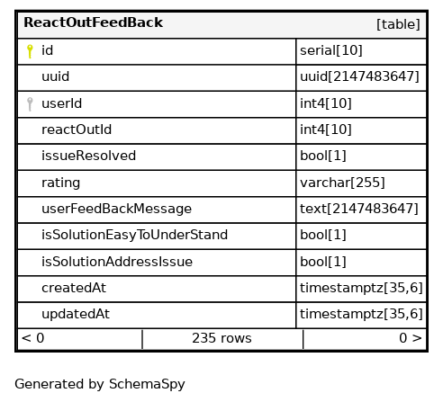 | ReactOutFeedBack_pkey | Primary key | Asc | id |