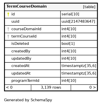| TermCourseDomain_pkey | Primary key | Asc | id |